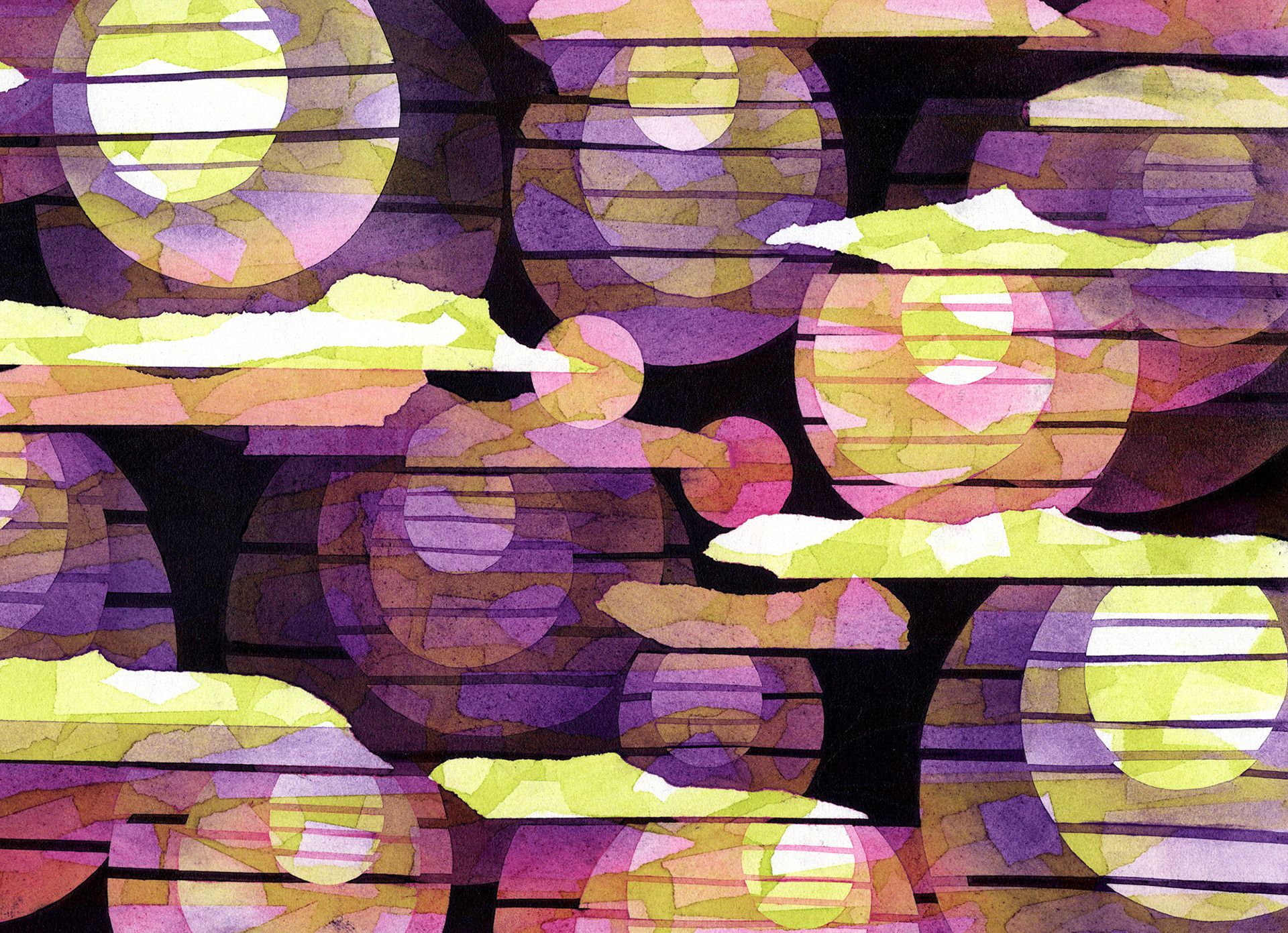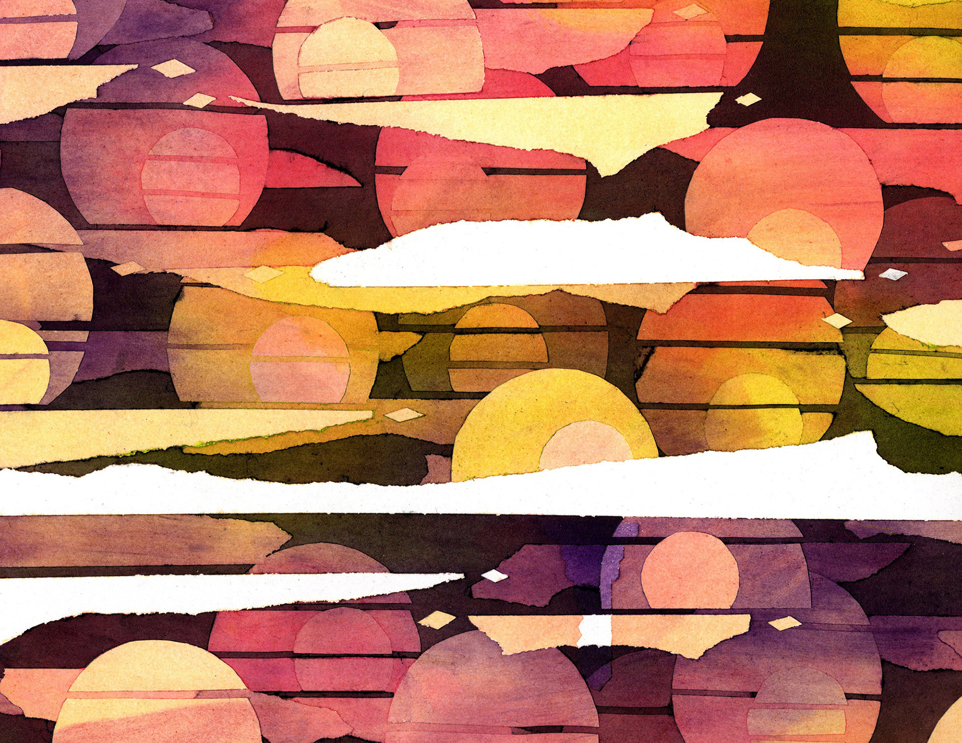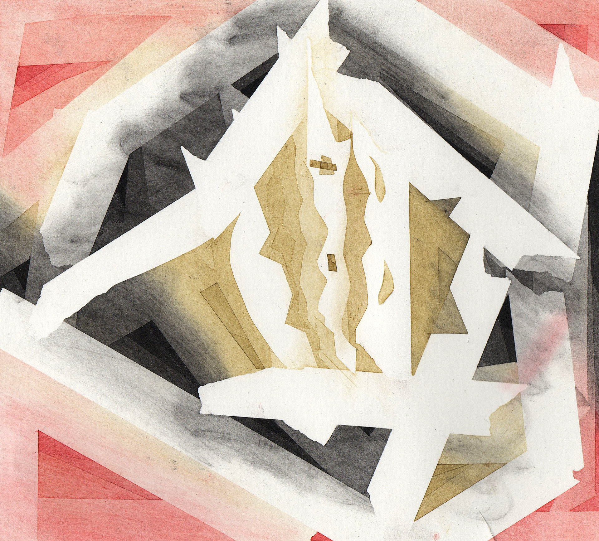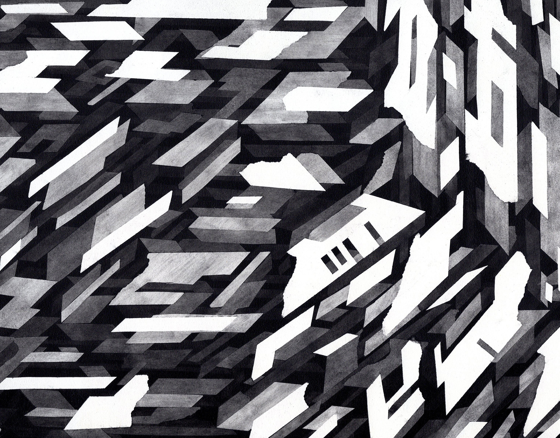 I was once obsessed with abstract patterns. The goal was to create a sense of depth using artist's tape, spray fixative, and many layers of charcoal and pastels. Ink drips are fun too.